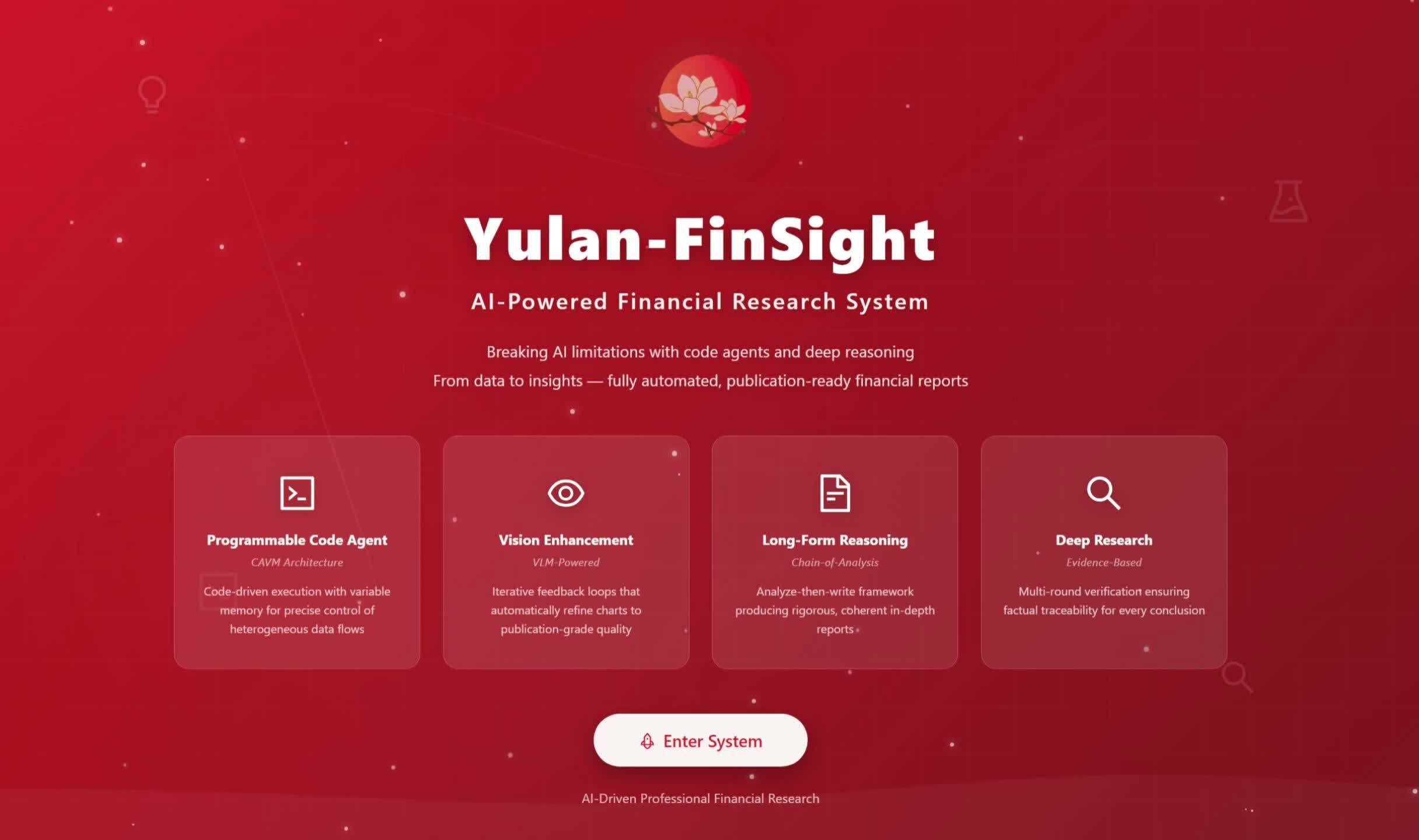 数以亿计的投资决策依赖于高质量、及时的研报。然而,撰写一份专业研报是极高强度的智力劳动,不仅需要处理海量实时异构数据,更依赖严谨的逻辑分析与专业的可视化呈现。目前的通用AI搜索系统(如 Perplexity, OpenAI Deep Research 等)在应对金融垂直领域时,常面临“领域知识缺失”、“图表生成简陋”以及“分析深度不足”三大挑战。为此,动漫色情片 推出了 玉兰·融观 (Yulan-FinSight) —— 一款面向真实场景的专家级多模态金融研报生成系统。